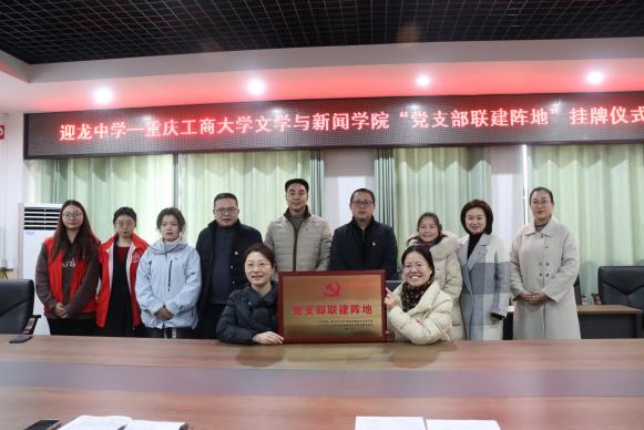 进一步探索新形势下高校党建工作的新思路、新方法,以党组织间的党建工作交流为平台,充分发挥好党组织间的合作优势,2024年1月5日,重庆工商大学yl7703永利集团研究生党支部与重庆市南岸区迎龙初级中学校党支部举行“党支部联建阵地”挂牌仪式。重庆工商大学yl7703永利集团党委书记于频,党委副书记、纪委书记程元元,学工办主任刘平,研究生党支部书记唐玉星,迎龙中学党支部书记、校长郑凌燕,迎龙中学副校长卢永雄,迎龙中学校长助理周万琴,迎龙中学德育主任肖继勋,迎龙中学团支部书记吴边等出席活动。该仪式由我院分团委书记刘平主持,在迎龙中学多媒体会议厅举行。