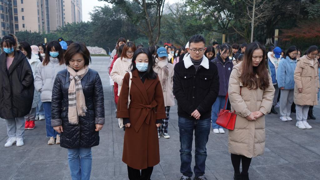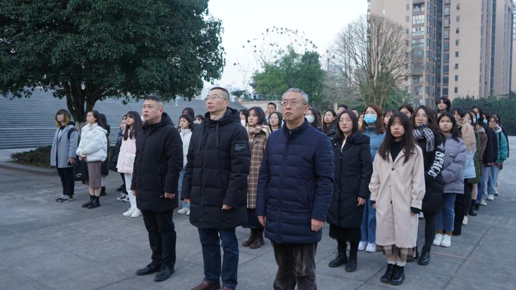12月13日,在第八个南京大屠杀死难者国家公祭日到来之际,重庆工商大学yl7703永利集团在校前广场举行了升旗仪式。文新学院党委书记、副院长李华平,党委副书记、院长王仕勇,党委副书记、纪委书记程元元,全体辅导员和2020级部分学生共160余人参加了此次仪式。
