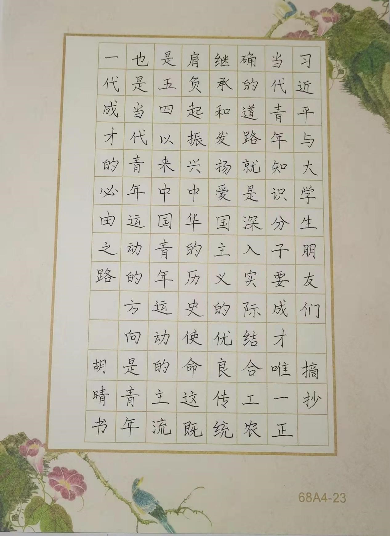 本次书法大赛不仅陶冶了同学们的书法情操,提高了同学们的书法水平及文化修养,让大家对书法文化、书法艺术有了更深的认识。响应了习总书记的五四号召,弘扬了爱国主义精神。人民领袖,亦师亦友,言谆意重,是温暖,更是指引大学生们前进的力量。