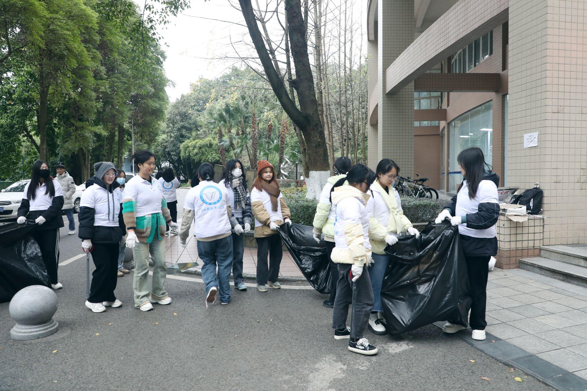 本次劳动教育实践活动面向我院22级全体同学,以班级为单位分别负责教学楼及周边区域的清扫工作。活动现场,同学们冒着凛冽的寒风有条不紊地开展劳动工作,他们分工明确、团结协作,通过捡拾垃圾、清扫落叶等形式在劳动中挥洒汗水,感受劳动实践的快乐。最终,经过同学们的一番共同努力,教学楼及周边区域的垃圾、落叶被全部清扫干净,为营造整洁舒适的校园环境贡献了青春力量。