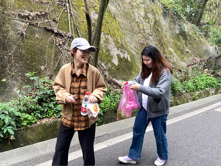 活动当天,阳光明媚,微风拂面。同学们早早地来到了指定集合地点,手持垃圾袋、夹子等工具精神饱满地从启智楼出发,向南山而行,开始了此次公益环保行活动。活动中,同学们细致认真,无论是翠湖旁的大马路、草坪,还是南山书院门前的道路,都留下了他们捡拾垃圾的忙碌身影。在此次活动中,虽然汗水湿透了衣衫,但每个人的脸上都洋溢着满足和喜悦的笑容。活动最后,全体成员在南山书院门口进行合影留念,此次南山公益环保行活动圆满结束。