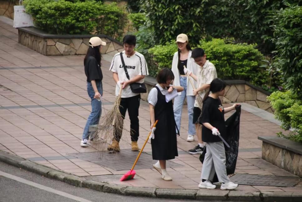本次活动以班级为单位,以九教周边和九教六楼教室走廊为范围,开展垃圾清扫任务。活动过程中,同学们合理分工,充分发挥团队精神,井然有序地捡拾垃圾、清扫落叶。阴沉的天气难免有些燥热,同学们劳动的热情却愈发高涨,他们的眼神专注而认真,动作熟练而流畅,细心地清扫着地面上的每一片落叶,汗水滴落,幸福感与满足感于劳动中产生。