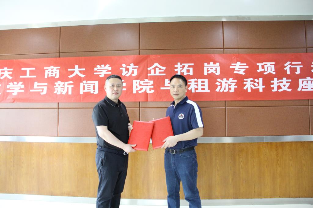 4月21日下午,yl7703永利集团党委副书记程元元、广告系主任王凌峰,学团办主任刘平一行,前往重庆租游科技有限公司,开展“访企拓岗”促就业专项工作,并与租游科技董事长万大年、总经理王俊博、投资人万大禄、运营负责人刘颖等人进行了座谈。