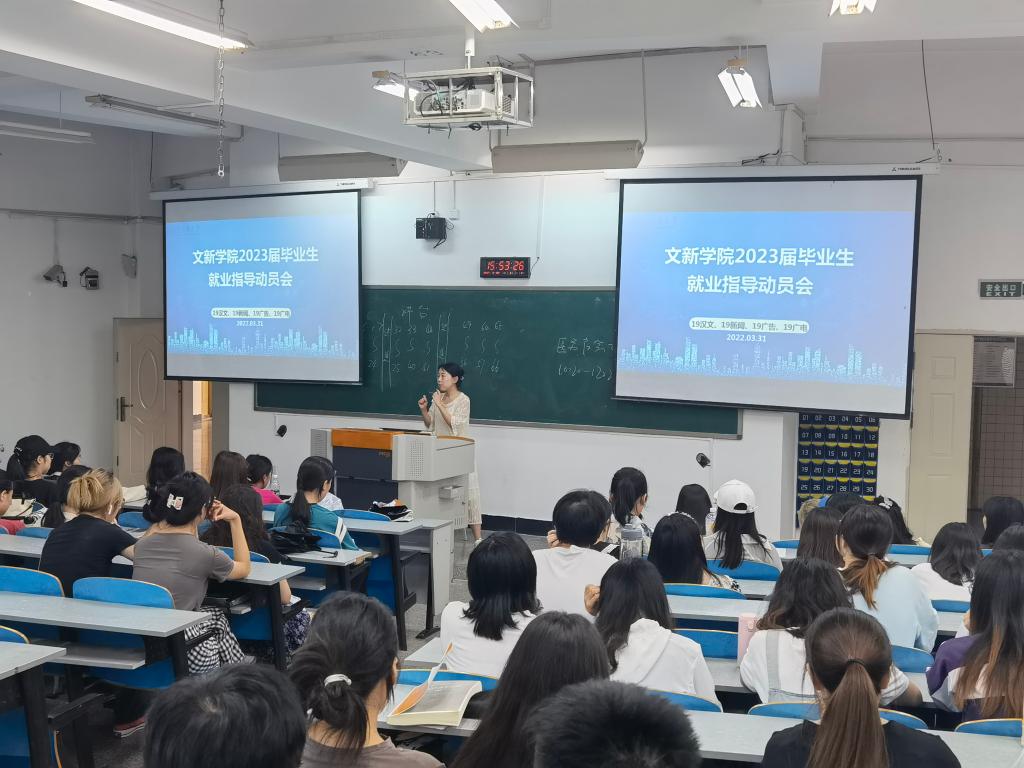 为更好促进2023届学生考研和就业,提升学生的考研和就业能力,识别就业陷阱,6月28日-6月30日,文新学院辅导员杜建清老师分专业面向2019级广告学专业、广播电视学专业、新闻学专业和汉语言文学专业的学生召开了2023届学生考研、就业指导会。