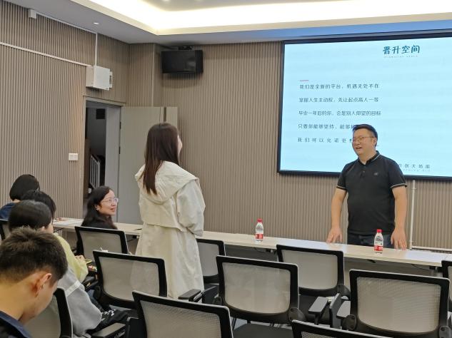 会上,卢帅就公立中小学教师行业的现况、薪资待遇、岗位需求、报名条件、选拔流程等信息与参会毕业生进行了交流,让有意向从事教育行业的毕业生们对于未来的求职之路有了更加开阔的了解。随后,潘桂明详细介绍了重庆明师人才服务中心的发展,热诚欢迎有意向投入教育行业的人才加入,并就公司人才的发展晋升进行了介绍。宣讲会的交流互动环节,参会毕业生积极提问,中心董事长潘桂明、总经理卢帅一一进行解答,并给予经验与建议分享。 让大家对公立中小学教师岗位及对个人未来的职业发展有了更加清晰的认识和规划。