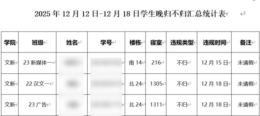 针对学院部分同学不请假彻夜不归或晚归情况,辅导员已第一时间与相关同学进行了解,知晓了同学不归、晚归的具体原因。学院现对上述不请假晚归不归同学进行通报,提醒其重视作息时间与安全要求,避免类似情况再次发生,希望以上受通报的同学严守校规校纪,合理安排学习、生活时间。