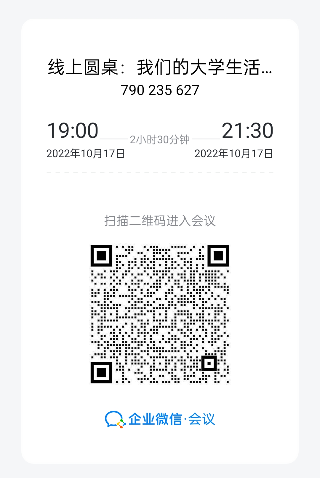会议时间:2022年10月17日19:00—21:00