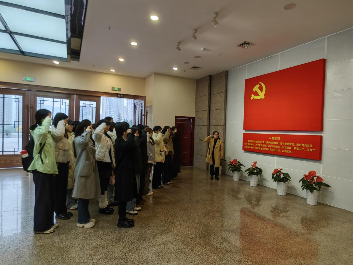 活动第一阶段,开展新发展党员入党集体宣誓活动。学生党员们面向红岩革命纪念馆大厅的鲜红党旗,高举右拳,在王欢老师的领誓下,庄严宣读入党誓词,以饱满姿态展现青年党员的昂扬风貌,传递为党的事业奋斗终生的坚定决心。