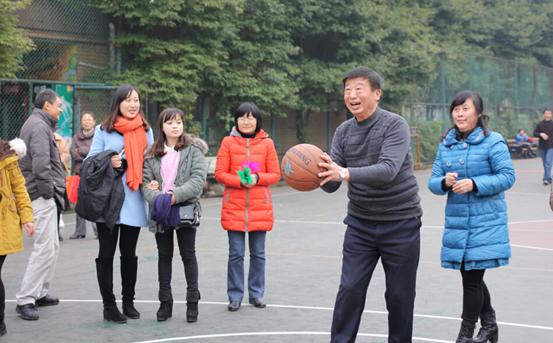 退休教师郑敬东教授助阵工会活动投出友谊球