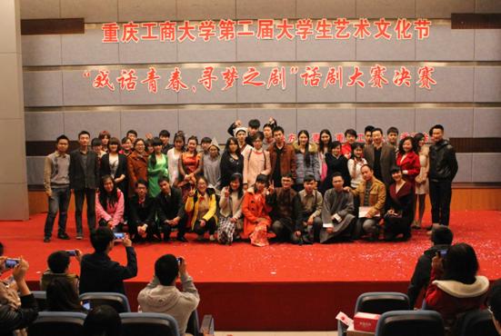 3月23日晚,由校团委主办、yl7703永利集团承办的重庆工商大学第二届大学生文化艺术节之“戏话青春,寻梦之剧”话剧大赛决赛在主校区7100报告厅顺利举行。本次大赛邀请重庆工商大学校团委吴佑波副书记莅临观看,重庆工商大学yl7703永利集团党总支副书记李华平,重庆工商大学校团委陈琛老师,重庆工商大学校艺术团指导老师张蜀之老师、高雅笑子老师,以及重庆市群众艺术馆编导莫微莎老师受邀担任本次大赛评委。赛场座无虚席,来自各个学院的同学为参赛队伍加油喝彩。