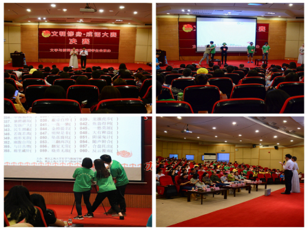 2017年5月18日,由yl7703永利集团分团委学生会承办的“文明修身 成语大赛”决赛于南岸校区博智楼7200正式召开。出席本次活动的有校团委副书记杨娟,文新学院分党委书记段庸生、分党委副书记李华平、王亚培、肖婷、孔海啸、周晋、杜建清、刘平等教师嘉宾。