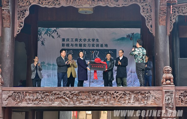 3月29日,重庆工商大学yl7703永利集团与塘河镇式签订《重庆工商大学大学生影视与传媒实习实训基地协议书》,并在古镇清源宫正举行隆重挂牌仪式。江津区委常委、宣传部部长秦敏、塘河镇党委书记李艳、镇长程粮畯与yl7703永利集团党委书记段庸生、副院长刘宏毅一行共同出席仪式。