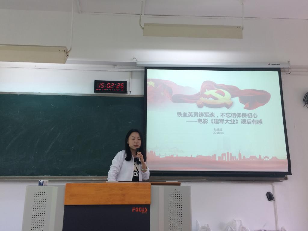 文新学院分党委副书记李华平宣读了表彰决定。本次征文比赛经过专家组评审及组委会审核,评选出一等奖1名、二等奖3名、三等奖5名和优秀奖11名。会上,一等奖获得者,学生一支部的杜建清老师做了题为《铁血英灵铸军魂 不忘信仰保初心》的获奖作品心得分享。二等奖获得者代表,学生一支部的彭思璇同学做了题为《峥嵘岁月稠 共筑中国梦》获奖作品心得分享。获奖者的发言,勉励了在座党员师生坚定理想信念,关心国家大事,坚信国家和民族的璀璨未来;号召学生党员勇于担当,做有理想、有本领、有担当的青年一代;鼓励学生党员不忘初心,以“中国梦”为马, 勤奋学习,拓展视野,做“四有”青年,做有益于国家和人民的青年人。
