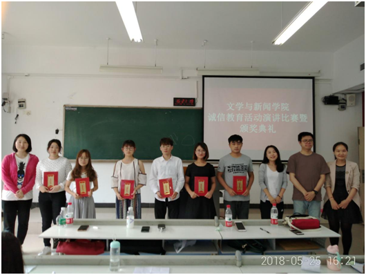 经过各位选手精彩的演讲以及评委老师的现场打分后, 8号选手的《勿以“信”小而不为》和10号选手的《诚信——做人的基本准则》成功拿到了最高分,获得一等奖,2号选手的《以真诚之心,行信义之事》、5号选手的“立身之本,存亡之根”以及1号选手的《诚信,你委屈了吗?》获得二等奖,其余的六位同学获得了三等奖,获奖同学由各评委老师为他们颁奖,现场气氛热闹非凡。