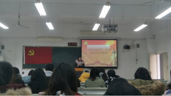 根据《中共重庆市委组织部 中共重庆市委宣传部重庆市国资委党委转发<关于认真学习贯彻习近平总书记重要指示精神广泛开展向黄群、宋月才、姜开斌同志为代表的抗灾抢险英雄群体和王继才同志学习的通知>的通知》(渝委组〔2018〕163号)精神,文新学院学生一支部支部书记张小焕老师结合通知给本支部学生上党课。