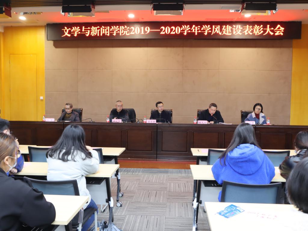11月27日下午,文新学院在新图书馆多功能报告厅隆重召开“2019—2020学年学风建设表彰大会”,学院分党委书记李华平、院长王仕勇、分党委副书记程元元、副院长邓伟、新闻系系主任张玉霞应邀出席本次表彰大会,学院全体辅导员、各获奖班级代表、获奖个人、2018、2019级各班学生代表近200人参加了本次大会。大会由学工办肖婷老师主持。
