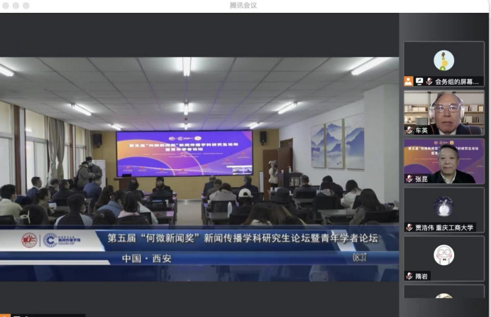 12月5日,第五届“何微新闻奖”新闻传播学科研究生论坛暨青年学者论坛在西北政法大学隆重举行。此次研讨会由西北政法大学新闻传播学院、中国新闻史学会新闻传播教育史研究专业委员会、中华全国法制新闻协会法制新闻伦理专业委员会、中国互联网协会网络文化与新媒体委员会联合主办。会议邀请了中国新闻史学会新闻传播教育史研究会会长、中央民族大学新闻传播学院特聘院长、华中科技大学教授张昆;中华全国法制新闻协会法治新闻理论研究会常务副主任委员、华东政法大学传播学院院长、教授范玉吉;中国互联网协会网络文化与新媒体委员会常务副会长兼秘书长、北京邮电大学教授曾静平等专家学者致辞并担任第五届“何微新闻奖”论坛评委。我院新闻学硕士研究生贾浩伟应邀参加研究生第一分论坛进行研讨交流。