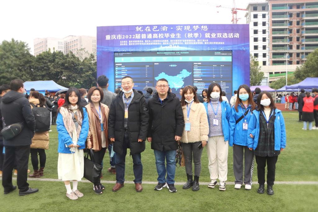 12月17日,由重庆市教育委员会、重庆市人力资源和社会保障局、重庆市国有资产监督管理委员会、重庆工商大学联合主办的“就在巴渝 实现梦想—重庆市2022届普通高校毕业生(秋季)就业双选活动”,在我校北区运动场成功举办。共有440家大中型企事业单位参加此次双选会,为我市大学生提供17262个职位。