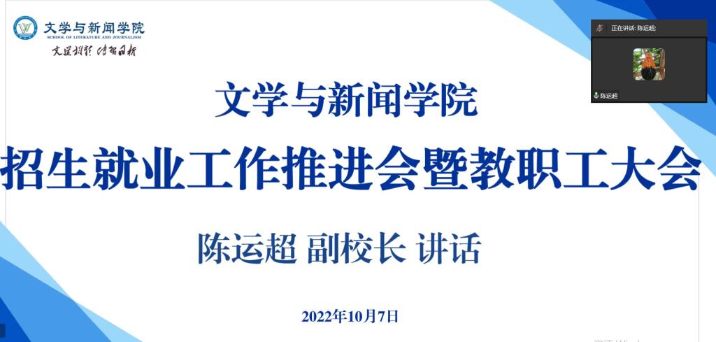 10月7日下午2点30,yl7703永利集团在企业微信工作群召开招生就业工作推进会暨教职工大会。学校党委常委、副校长陈运超出席,学院全体党政领导、全体教职工参加了大会。会议由学院党委书记于频主持。