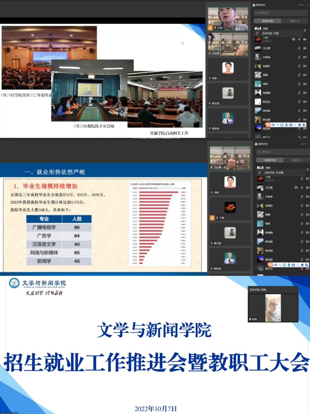 本次会议分为学院就业工作和教职工大会两个阶段。