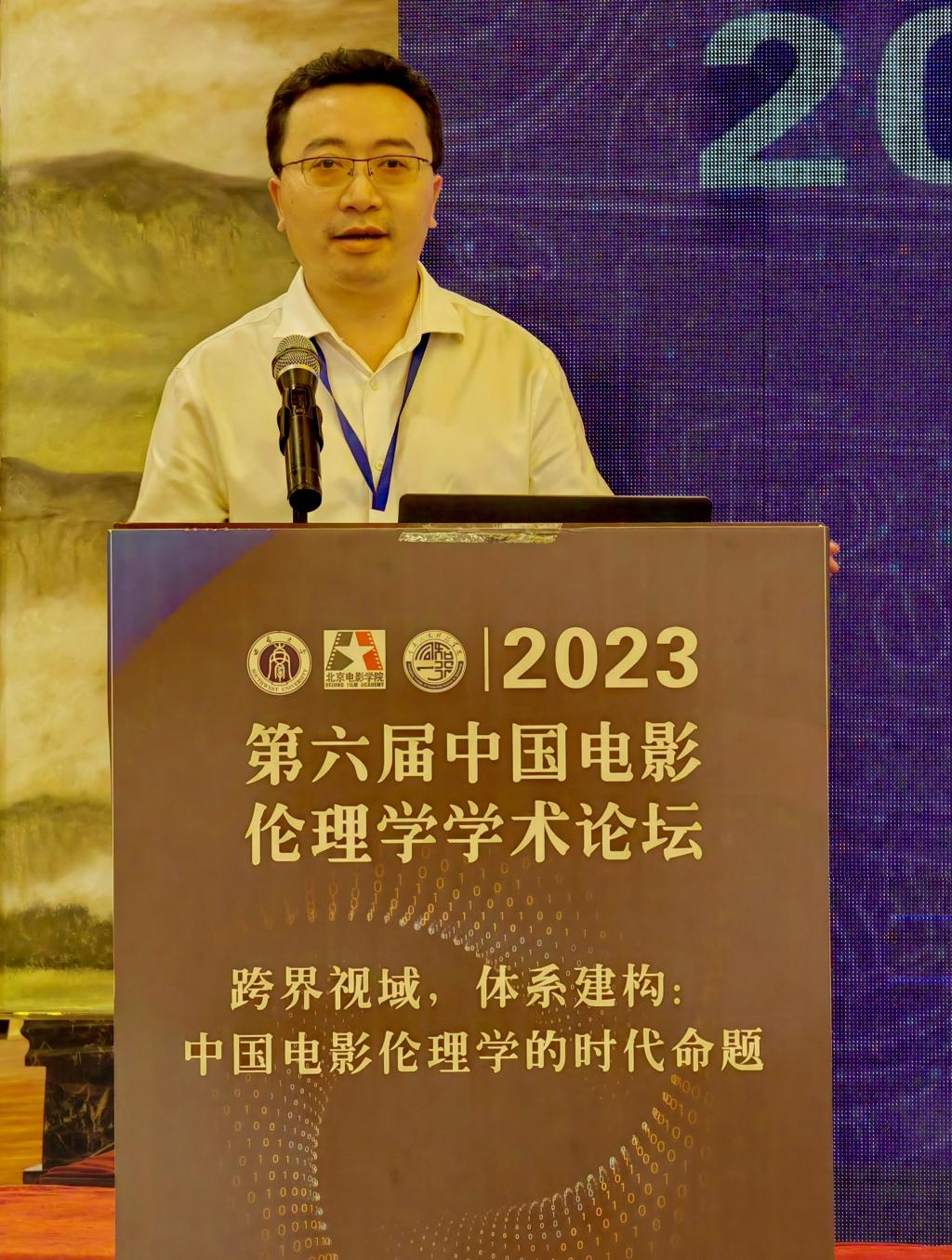 主题发言环节,北京电影学院未来影像高精尖创新中心中国电影学派研究部部长贾磊磊以《中国电影伦理学的体系建构路径》为题,指出中国电影伦理学的研究要实现对中国优秀伦理文化的继承和弘扬,确立以人文精神为价值取向的批评标准,同时要建构本体论、方法论与价值观相统一的思想体系。北京大学陈旭光教授以《“以人为本”:电影工业美学的伦理问题思考》为题,以“新力量导演”为缘起,探讨了电影工业模式中作者的伦理问题。中国电影评论学会会长饶曙光以《地缘美学和共同体美学》为题,指出电影中的地域性可以为电影提供多样性的文化表达,但也要遵循共同体美学的原则,为中国电影的发展提供更大的空间。北京师范大学周星教授以《从中国式现代化进程角度谈中国电影伦理学研究的框架和结构》为题,指出中国电影伦理学研究的指向应该回归到人的伦常关系之中,同时还要回归到中国经典电影进行伦理学视角的再研究。西南大学新闻传媒学院袁智忠教授以《学科视域下的电影文化伦理建构》为题,立足于“学科体系”“学术体系”“话语体系”这三大体系,进行了电影伦理学科和学派的理论延拓创新和进路思考。