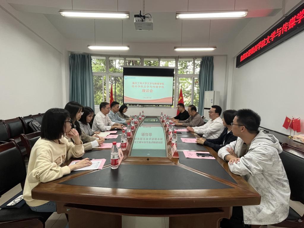 10月13日下午,梧州学院文学与传媒学院新闻学教研室主任朱俊海一行来我院调研交流。学院院长殷俊,广电系教师顾瑛、陈绍富、谈华伟,新闻学系教师邵茹波参加了座谈。座谈会在学院90528会议室举行。