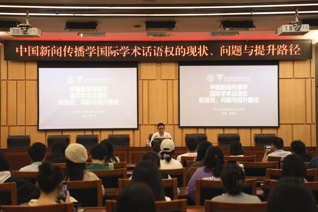 上午10点,韦路为学院师生带来了一场题为“中国新闻传播学国际学术话语权的现状、问题与提升路径”的学术讲座。现场座无虚席、气氛热烈。讲座由殷俊主持,学院多名教师和100多名研究生参加。