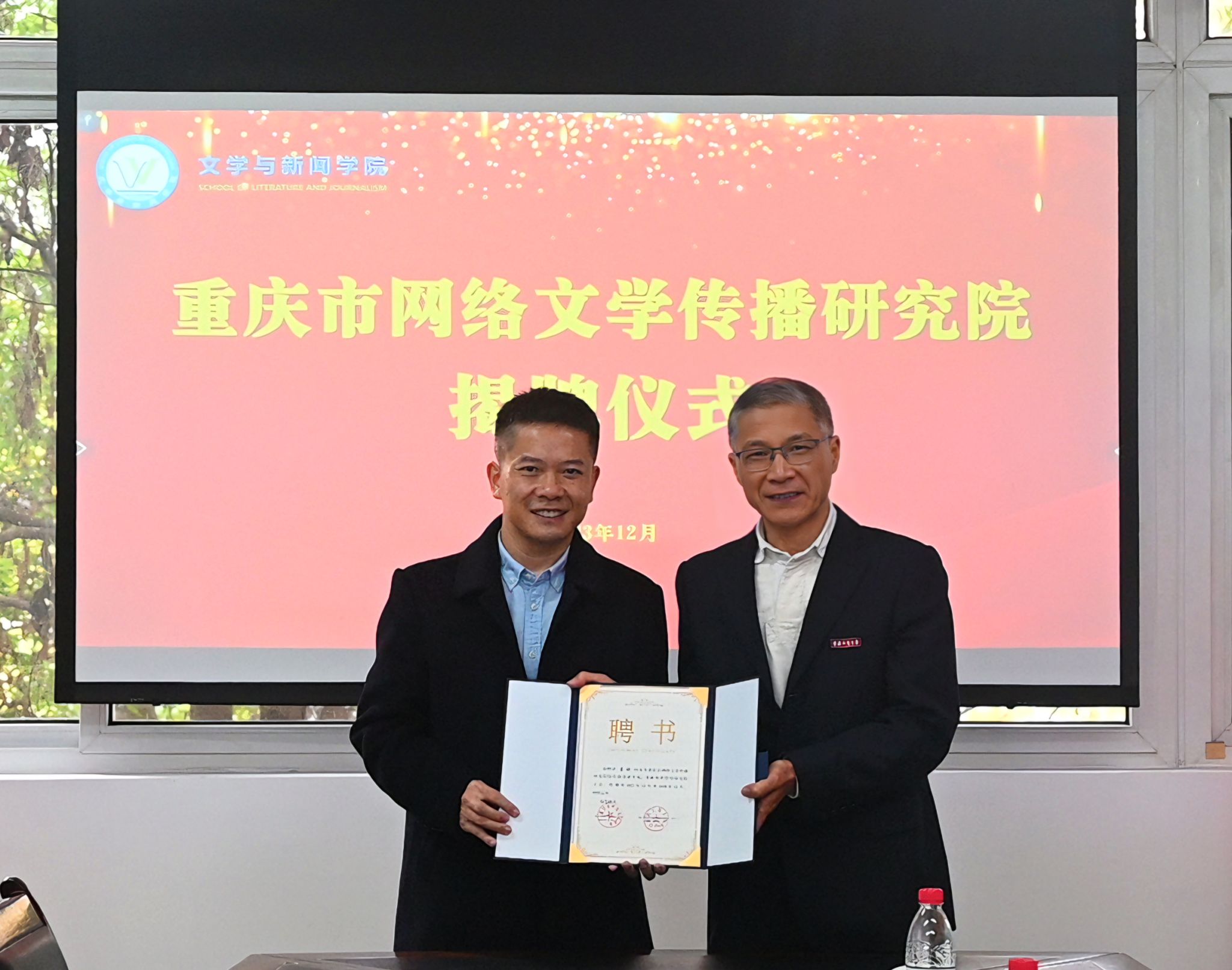 陈运超副校长、袁锐主席为重庆市网络文学传播研究院成立揭牌
