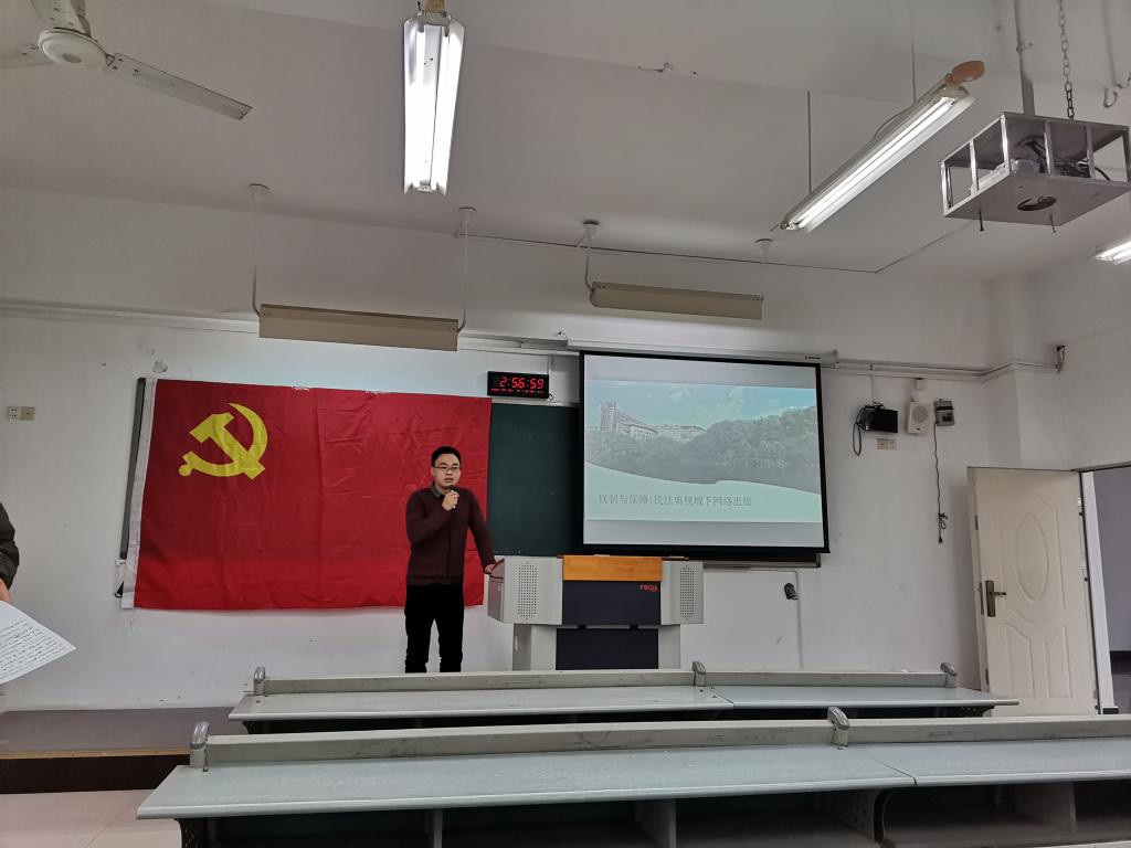 付红安博士主讲的题目为《规制与保障:民法典视域下的网络出版》。他结合自己的研究领域,从“网络出版主体资格的界定与调适”“网络出版合同的订立与风险防控”“网络出版中的知识产权与人格权保护”“网络出版服务单位的侵权责任认定”四个层次出发,全面分析了民法典对网络出版行为各方面的规制与保障。