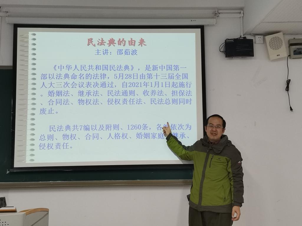 邵茹波副教授主讲的题目为《民法典的由来》,其中提到:《中华人民共和国民法典》是新中国第一部以法典命名的法律,5月28日由第十三届全国人大三次会议表决通过,自2021年1月1日起施行;制定民法典,是为了全面、系统地整合我国的民事法律;民法典是市场经济的基本法,是公民生活的基本行为准则,是法官裁判民事案件的基本依据。