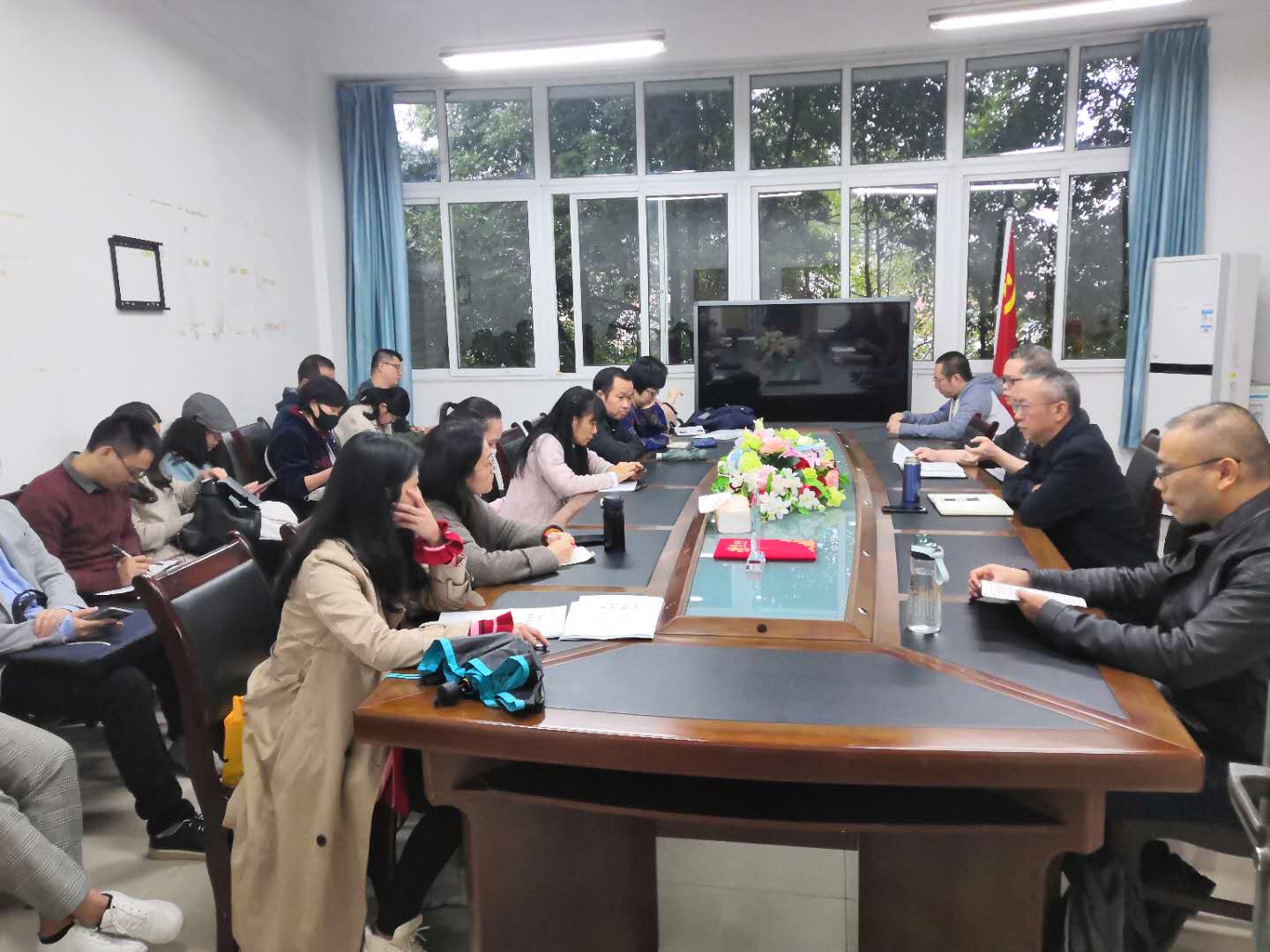 邓伟副院长就学院现有科研设备资源、新一轮科研项目申报、定期举办“龙脊问道”学术论坛等情况进行了介绍,并号召博士教师们积极参与项目申报,积极参与学院学科建设。接下来,由在场博士教师们依次进行发言交流,就以下几点发表个人建议:定期邀请其他学校、其他专业的专家学者,各大学术期刊主编、编辑到学院学术论坛开设讲座,分享交流科研经验;定期举办学术沙龙,加深教师们有关科研经验、学术建议方面的交流学习;发挥教师们各自的专业优势,开发交叉学科等研究方向的学术潜力;研究方向一致的教师们可以团队形式发表系列论文;教师们积极以个人或团队形式参加国际国内学术会议;建设符合学院专业特色的学术平台,以及相应的科研团队等。发言现场互动交流气氛热烈。