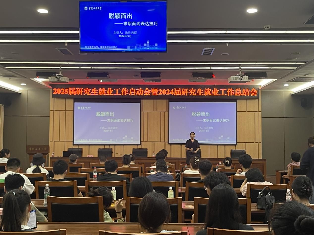 9月13日下午,研究生院联合yl7703永利集团邀请朱洁教授为2025级研究生作《脱颖而出—求职面试表达技巧》专题讲座。9月第三周为第27届全国推广普通话宣传周,主题为“加大推普力度,筑牢强国语言基石”,此次讲座旨在让学生体验语言的魅力,提升表达能力,提高就业竞争力。