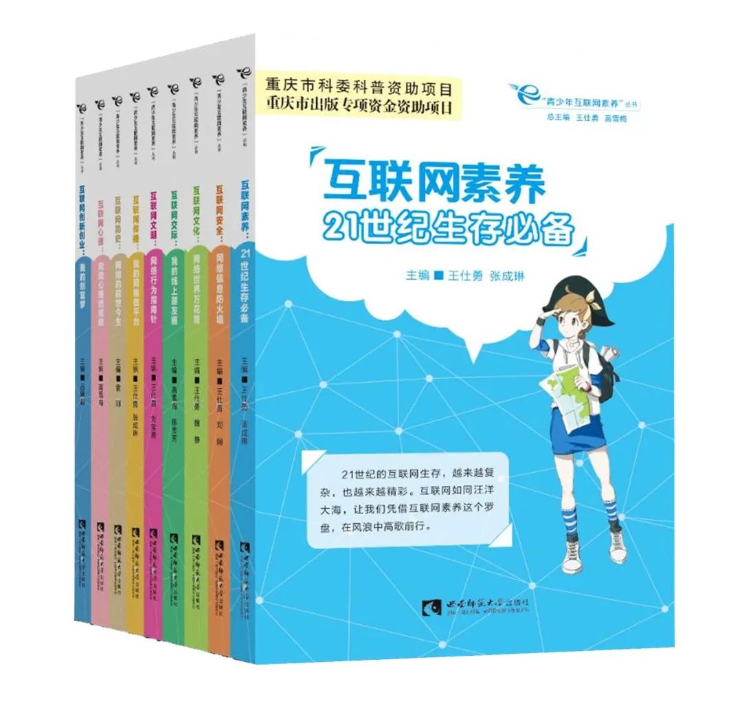 由我院院长王仕勇教授总主编,西南大学出版社出版的《青少年互联网素养》丛书正式出版发行。该丛书立足互联网蓬勃发展的时代背景,响应时代、国家和社会的要求,将“互联网素养”与“青少年成长”两大时代主题有机结合起来,从多个角度出发来建构当代青少年所应具备的互联网素养,涉及话题广泛,内容丰富。
