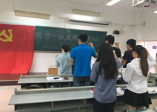 会上,支部书记肖婷老师带领党员对2012年党的十八大通过的《中国共产党章程(修正案)》进行集体学习,帮助全体党员加深对党的根本组织制度、党内最根本的政治制度、党的指导思想和党的基本路线等重要内容的认识。支部党员结合自身学习、工作、生活实际情况,着重围绕“学生党员如何理解党员的权利和义务”进行交流讨论。随后,在支部书记的带领下,支部党员面对党旗,右拳紧握,重温入党誓词,庄严激昂的表达自己作为学生党员的荣誉感、责任感和使命感。