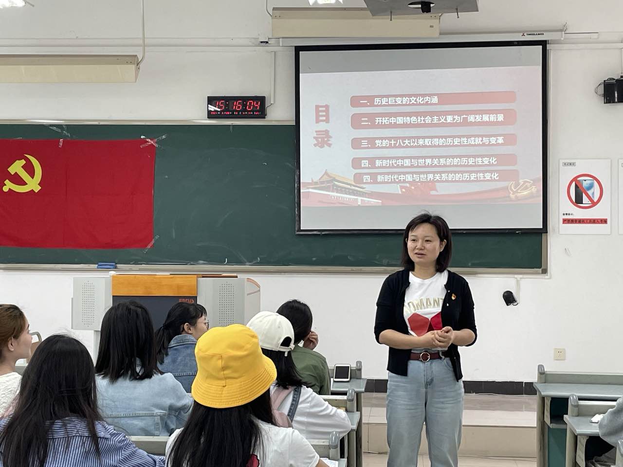 在党课上,刘老师先带领大家学习了《复兴指南:习近平新时代中国特色社会主义思想与中华民族伟大复兴》的学习内容,通过此次学习,各位党员和入党积极分子都更加深刻地体悟到中国共产党义无反顾地肩负起中华民族伟大复兴的历史使命,敢于担责,能够担责,是中国人民的主心骨,是中华民族伟大复兴的根本保障这一历史事实。同时也让党员同学和积极份子们对马克思主义中国化的最新成果即习近平新时代中国特色社会主义思想的内容及其创立的时代背景等有了更深刻的认识,讲到现在全面建设社会主义现代化国家的新征程已经开启之时,同学们纷纷表示要认真努力,为实现中华民族的伟大复兴贡献力量。
