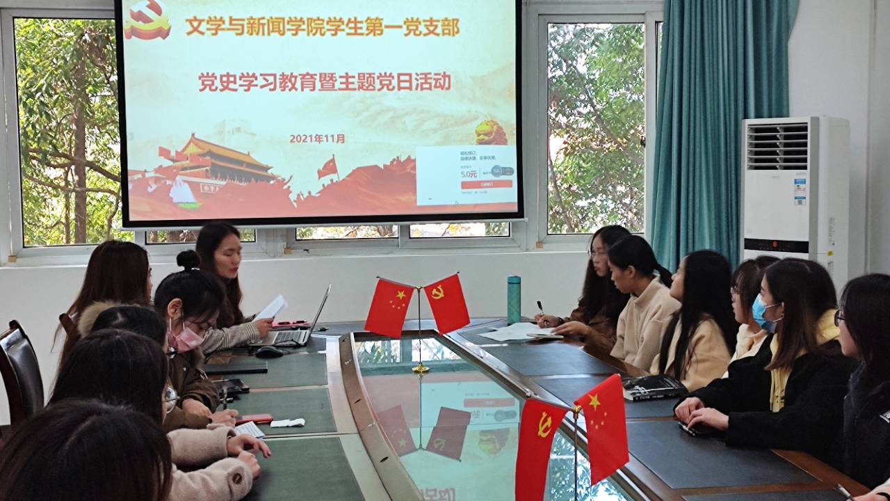 11月30日,文新学院学生一支部在慧智楼90528会议室组织开展党史学习教育暨主题党日活动。