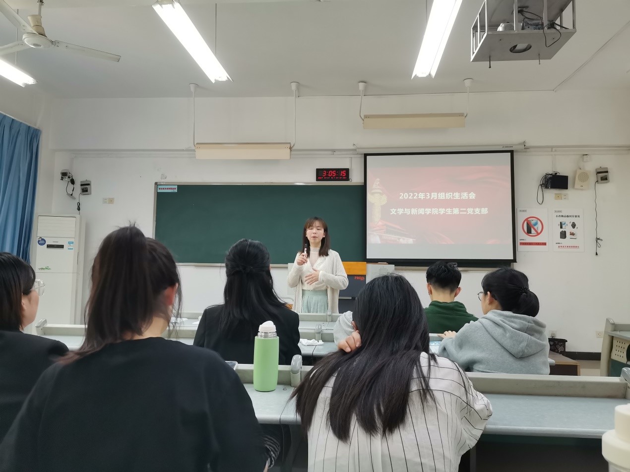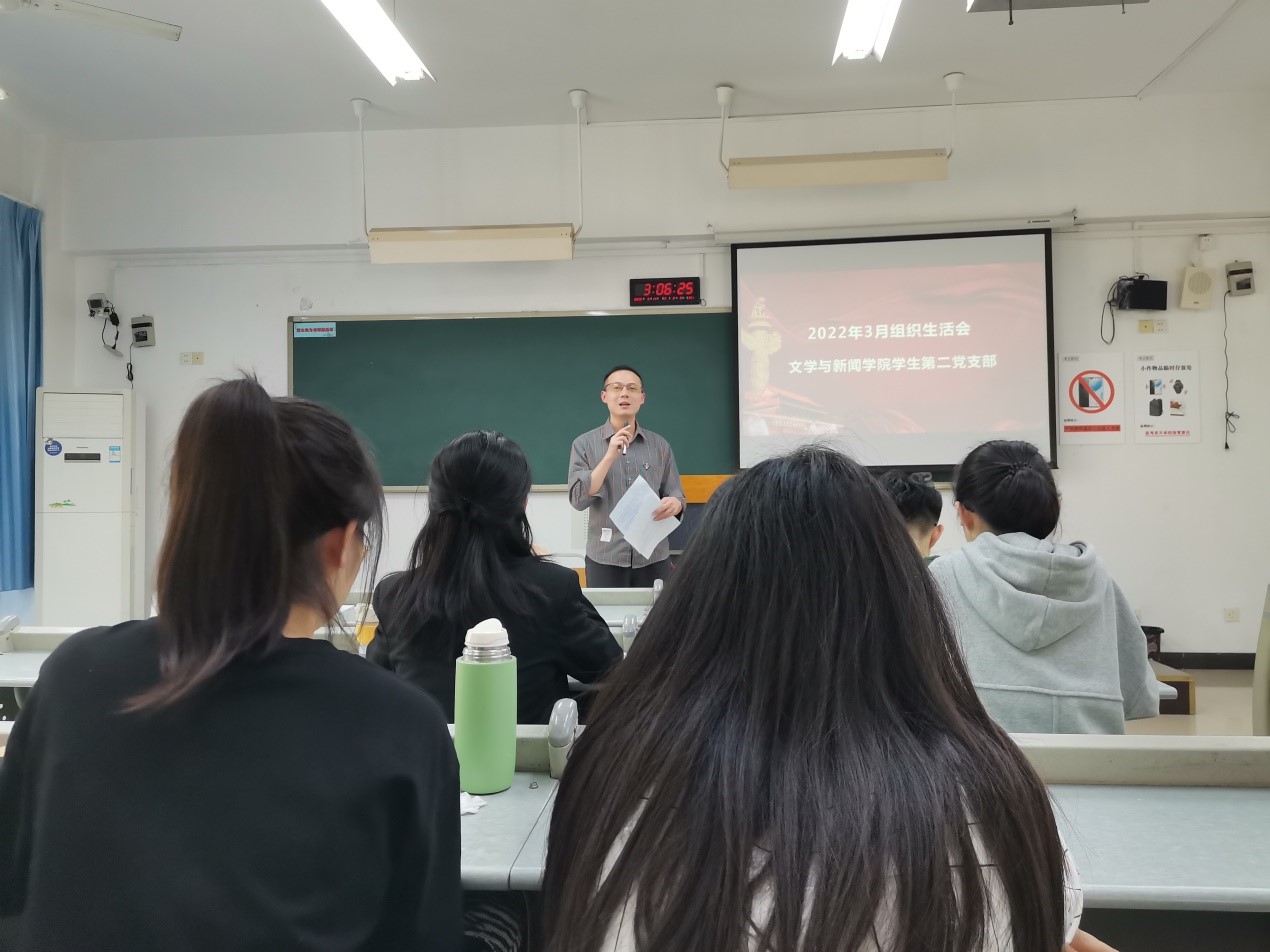 近日,文新学院学生二支部在慧智楼90625教室召开了3月组织生活会,会议由学生二支部支委会成员周晋老师主持,全体支部党员一起学习了《关于加强新时代廉洁文化建设的意见》、《习近平在北京2022年冬奥会欢迎宴会上的致辞》、《习近平在中央党校(国家行政学院)中青年干部培训班开班式上的重要讲话》等9份学习材料。