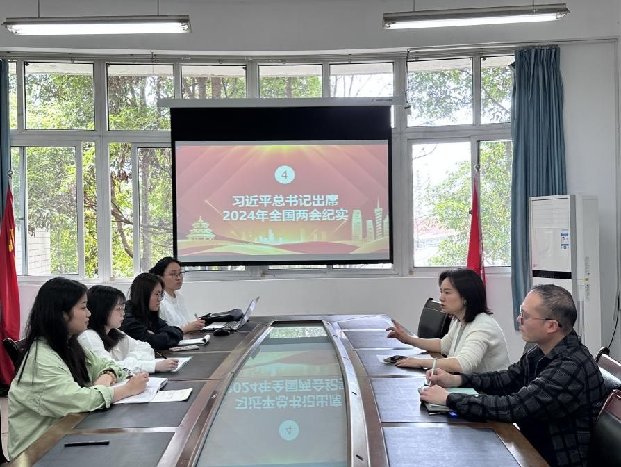 首先,刘平老师聚焦两会热点和重点,带领全体党员认真梳理了两会概况,重点学习了习近平总书记在两会期间的重要讲话精神。她号召全体党员将“两会”精神贯彻落实到自身实际生活中,以两会精神为引领,以更加昂扬的斗志和更加务实的作风,为学校建设、社会发展贡献青春力量。