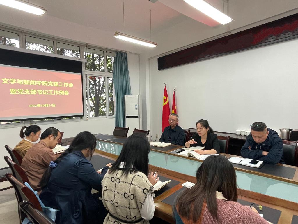 10月24日下午,文新学院党委在90528会议室召开了党建工作会暨党支部书记工作例会。学院党委委员及5个党支部的支部书记参加了会议。会议由党委书记于频主持。