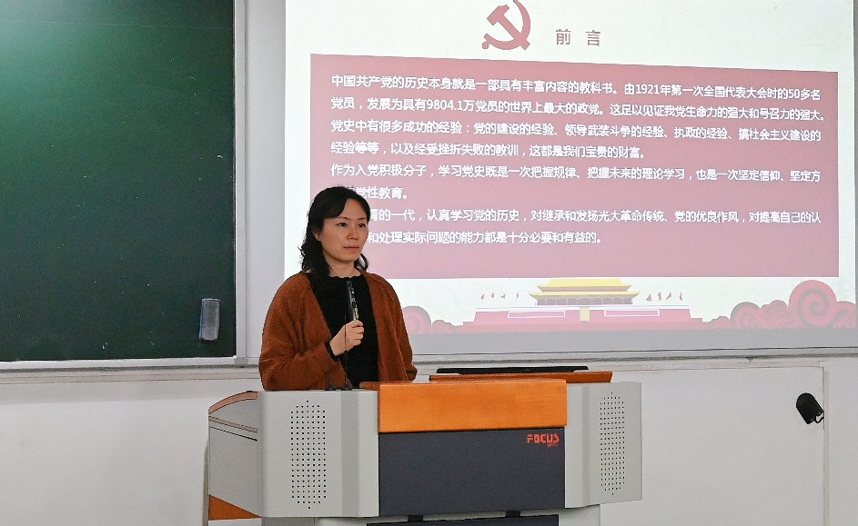 在接下来的教学环节中,肖婷老师为同学们全面解读了中国共产党的党史;徐国平老师带领同学深入学习了党的二十大精神;张小焕老师结合相关文件认真、详细地讲述了入党流程以及注意事项,这让同学们对以后的入党程序有了更加清晰的认知,对综合素质的全面提升有了更加坚定的目标;邵茹波老师和唐玉星老师分别对《中国共产党章程》和中国共产党的组织原则、纪律以及党徽党章知识进行了深刻地讲授。 最后,同学们认真地观看了视频教学大型纪录片《征程》, 圆满地完成了此次入党积极分子培训任务。