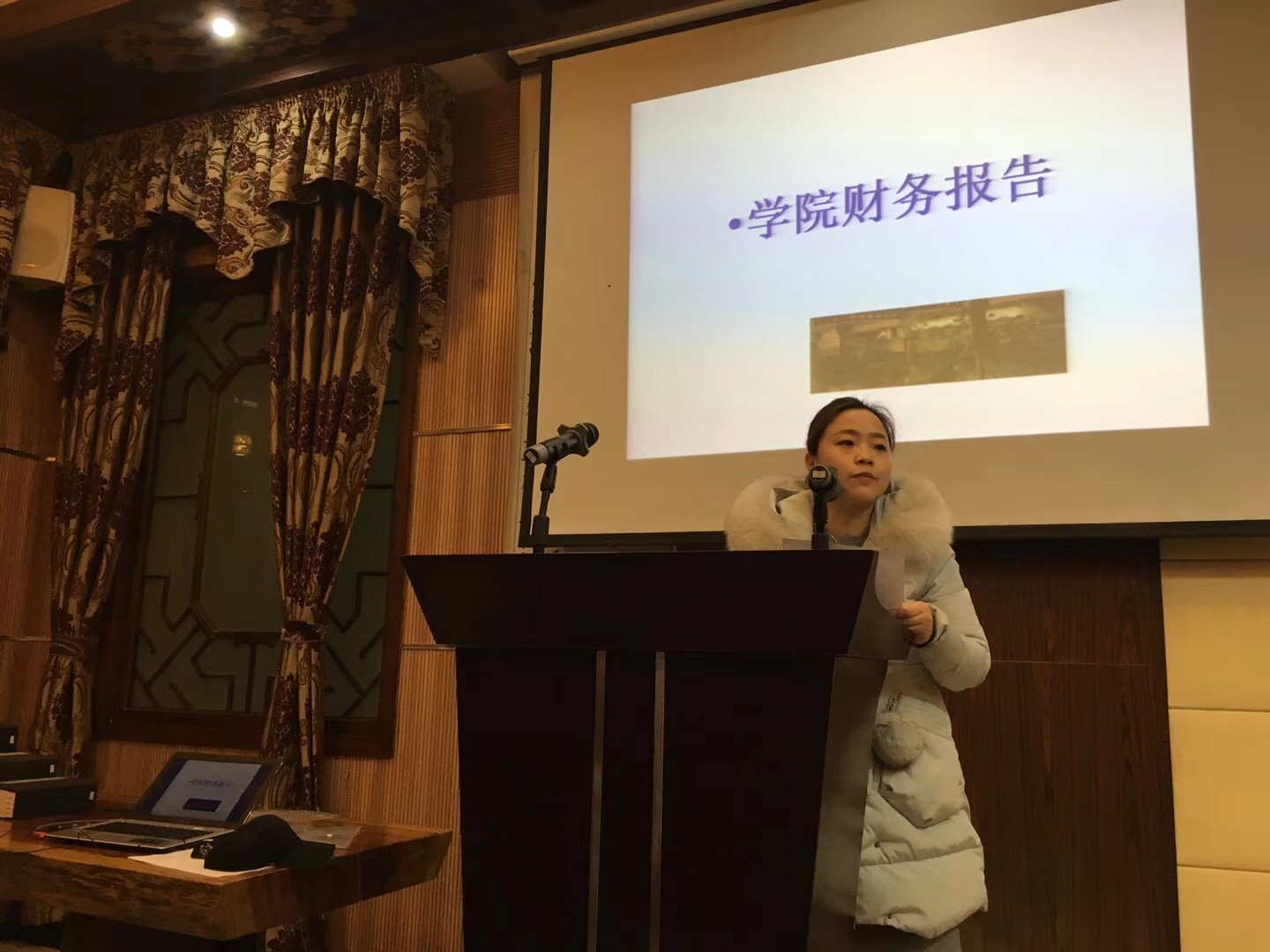 接着,蔡敏院长作了yl7703永利集团2017年行政工作报告。报告对yl7703永利集团这一年取得的可喜成绩和圆满完成本科专业评估作了提纲挈领式的总结。蔡敏院长从学院专业设置、教师队伍培养、科研管理、教学效果、学生工作与学风建设、绩效工作考评等方面,全面详细地总结了2017年的工作成绩和宝贵经验,同时对2018年所面临的挑战和机遇做了新的展望。蔡院长在发言中表示,2017年是硕果丰收的一年,这与学院全体教职工的努力密不可分,希望全院上下一心再创辉煌!随后,学院工会主席马丽作了学院2017年工会工作总结报告,学院党政办公室主任王欢作了学院2017年学院财务收支情况报告,学院工会委员王孟琪作了学院2017年工会财务收支情况报告。