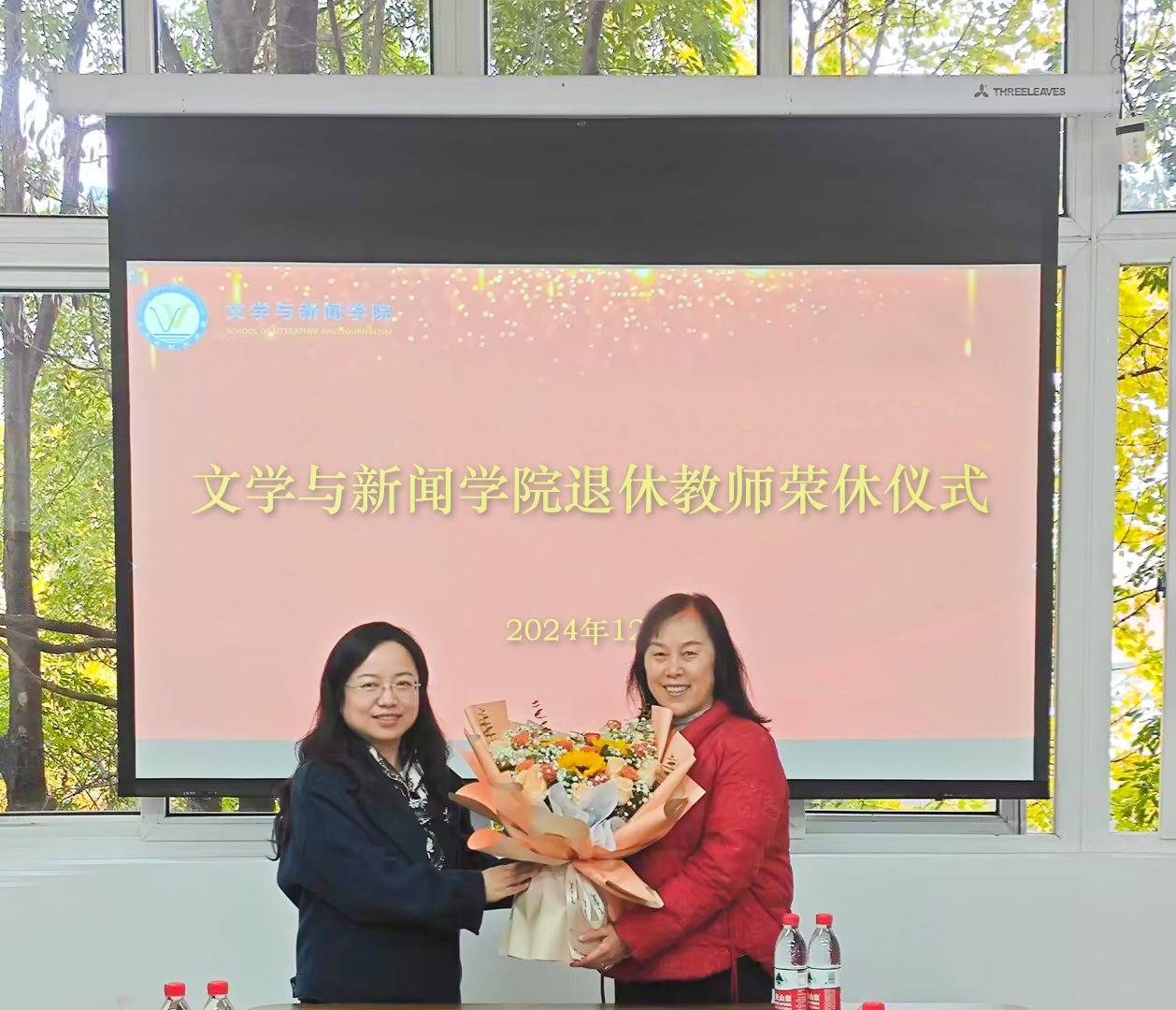 潘焱代表学院班子为退休教师献花,表达敬意和祝福。感谢他们几十年来为学校、为学院、为学生的辛勤付出,祝福他们即将开启人生的新阶段,欢迎他们继续发挥余热,为学院的发展和青年教师的成长贡献力量。紧接着,与会青年教师畅所欲言,回忆自己与退休教师共同经历的美好往事和难忘经历,共叙深厚友情,表达美好祝福。现场气氛活跃,情意浓浓。