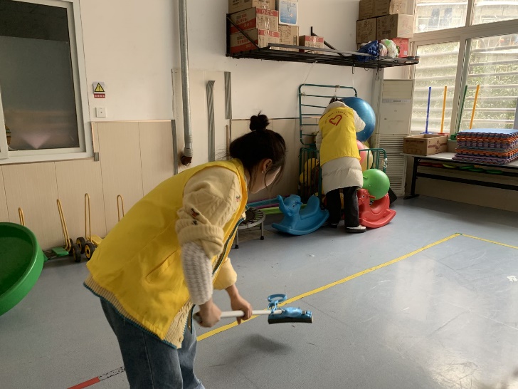 为了能够给孩子们提供健康舒适的教学环境,“启明星”儿童基地的志愿者们在基地工作人员的安排下分工合作,配合默契地完成了活动场地打扫、玩具清洁归类、书籍整理等服务,用一丝不苟的工作态度践行着雷锋精神。