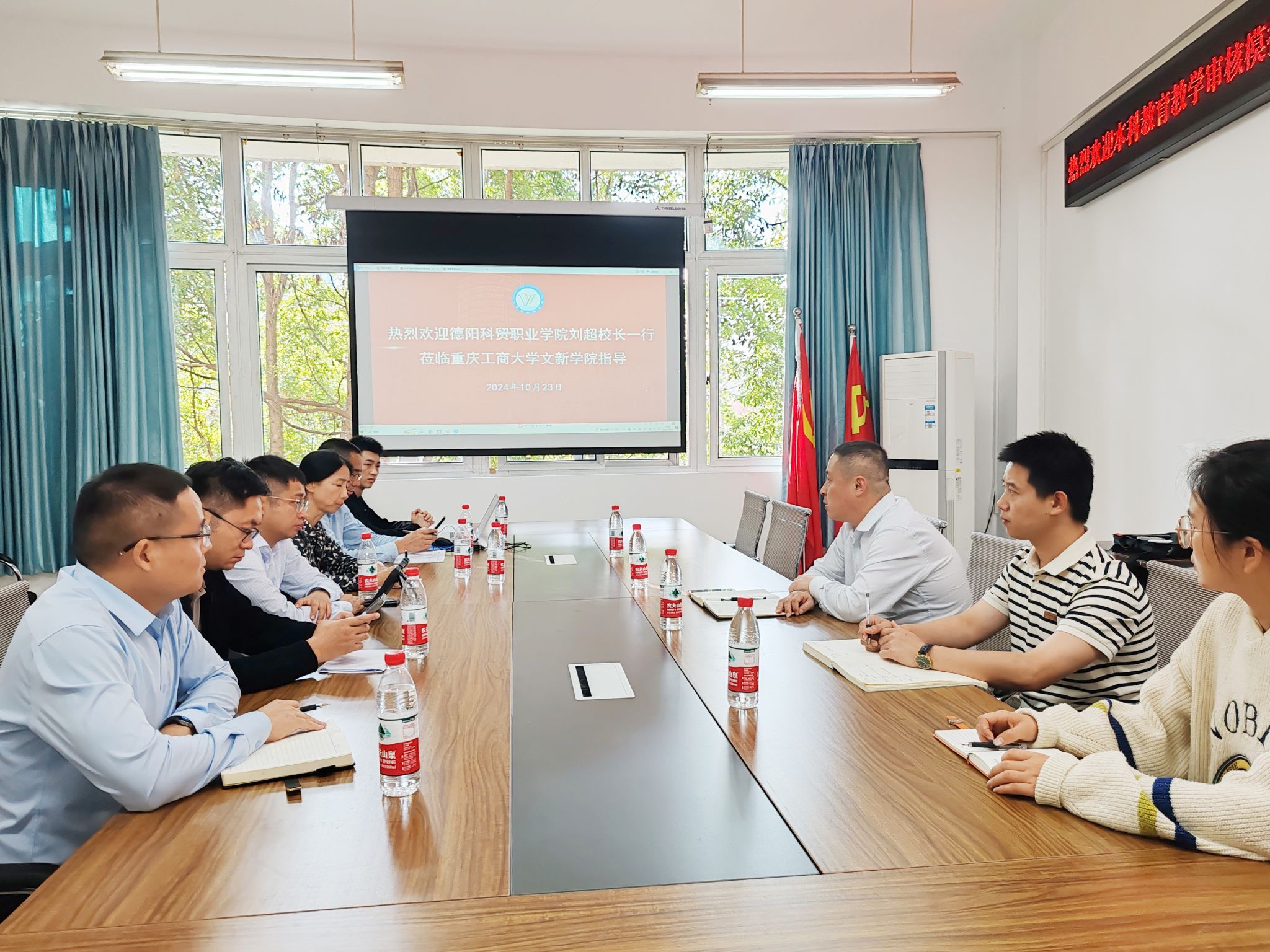 10月23日下午,德阳科贸职业学院刘超副校长、重庆头角文化传媒有限公司代表一行到yl7703永利集团90528会议室交流洽谈校企合作,学院党委副书记程元元、学工办李琦、张波老师参与会谈,会议由程元元主持。