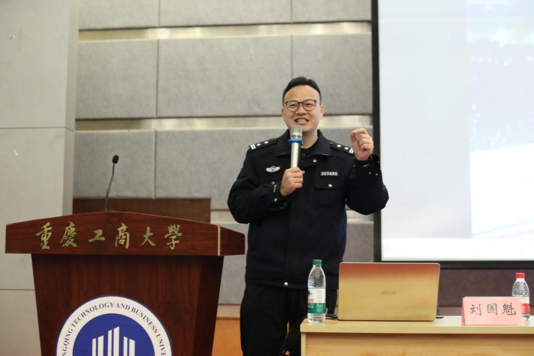 随后,刘国魁警官结合当前高校高发的真实案例,重点剖析刷单返利、虚假交易等典型骗局,通过解析身份信息泄露、诱导转账等常见作案手段,向学生详解防范要点,提出识别话术漏洞、阻断转账风险等实用技巧,为现场师生上了一堂由浅入深的防诈反诈专题课。针对当前学生群体易涉及的网络兼职诈骗、租借电话卡诈骗等灰产陷阱,刘国魁以案释法,警示青年学子切莫因蝇头小利触碰法律红线。刘国魁特别提醒同学们要将反诈知识牢记于心,不仅要自己做好防范,还要积极向身边的人宣传,做到终身反诈防诈,共同为平安校园及和谐社会建设贡献自己的力量。