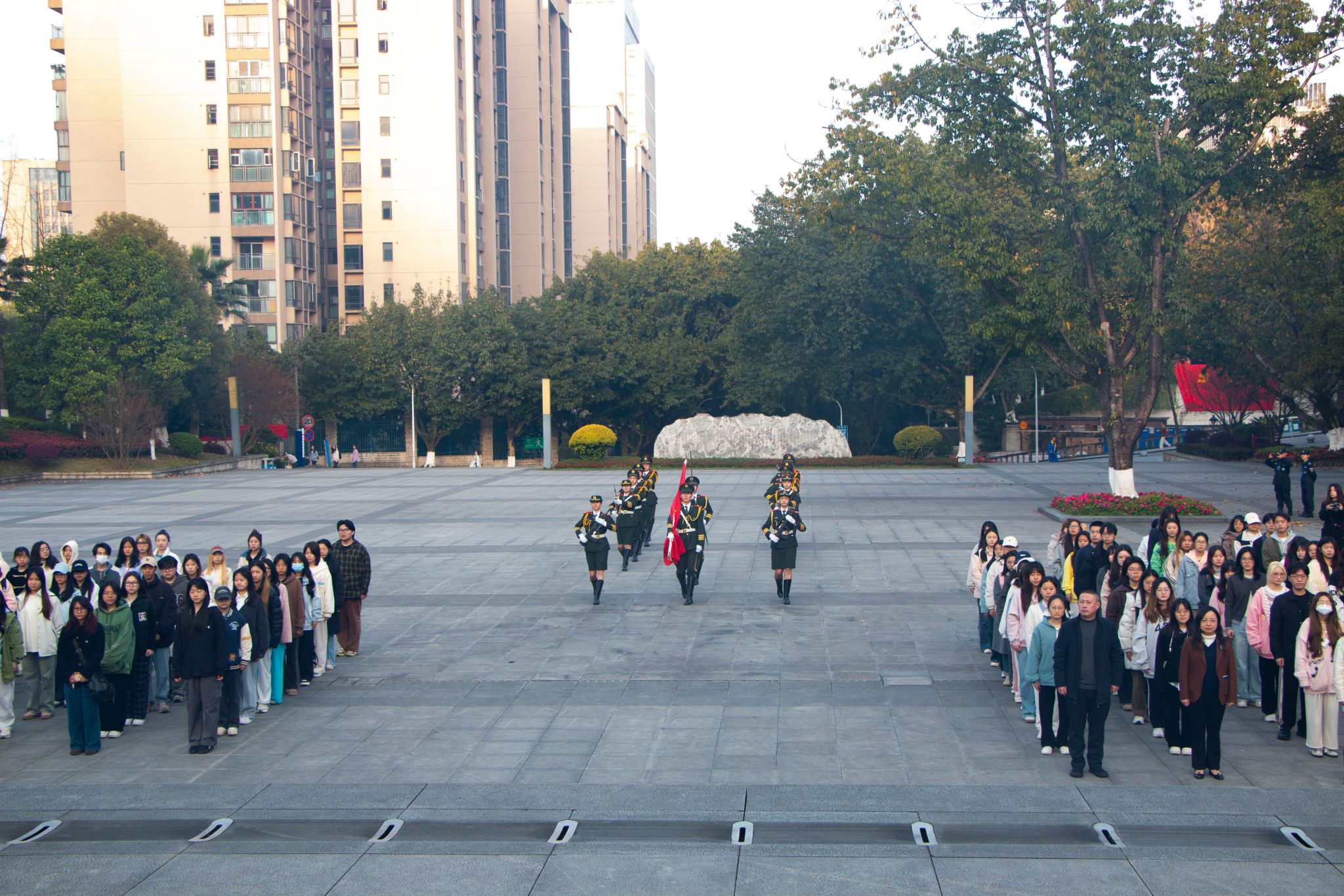 3月24日,yl7703永利集团于重庆工商大学南岸校区含弘广场举行了以“弘扬两会精神,勇担时代使命”为主题的学校第5周升旗仪式。学院党委书记潘焱,党委副书记程元元,学院学工办教师代表及2023级研究生和本科生代表到场参加,仪式由2023级新闻学学生罗登润主持。