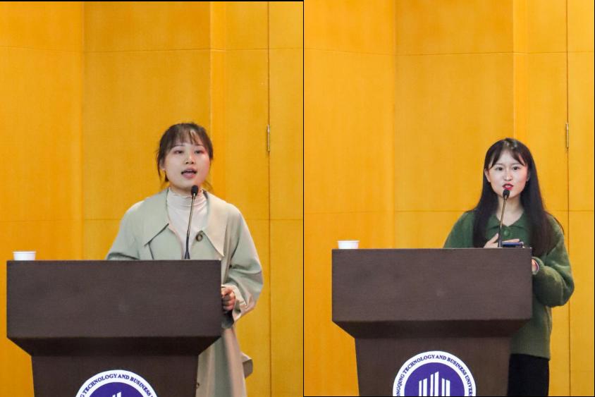 最后,研究生代表2020级新闻传播学学硕赖英及2020级新闻传播学专硕阳艳娥依次上台发言,介绍了新生的基本情况及学科背景,对即将到来的研究生生活做出了展望。