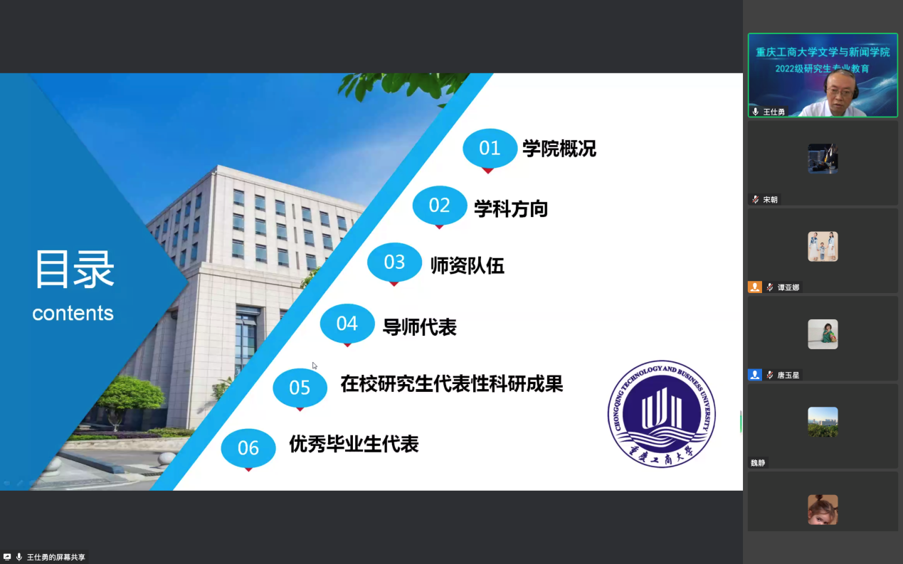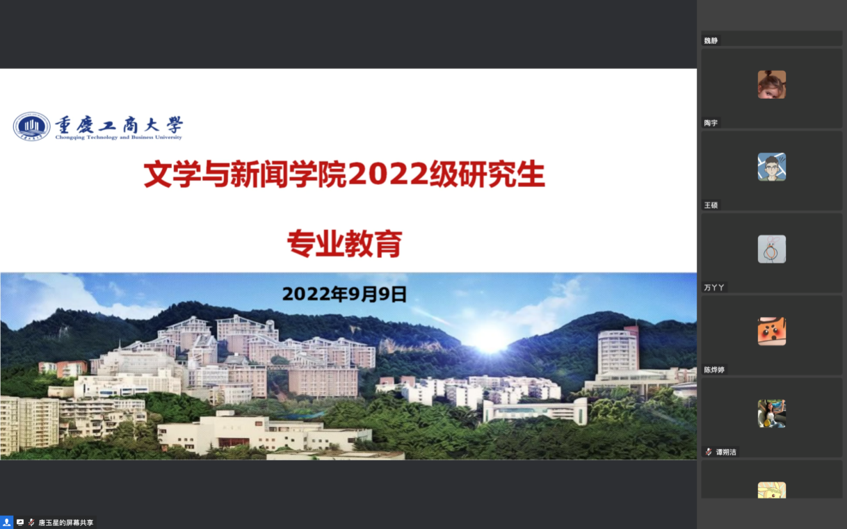 为帮助研究生新生尽快转换角色、融入新环境、增强归属感,9月9日下午2点,yl7703永利集团2022级研究生新生入学教育在线上召开。学院党委书记于频、党委副书记、院长王仕勇、党委副书记程元元、副院长邓伟、副院长郑笑眉、高年级学生代表出席会议,2022级全体研究生新生参加了这次会议。会议由研究生支部书记、班主任唐玉星主持。