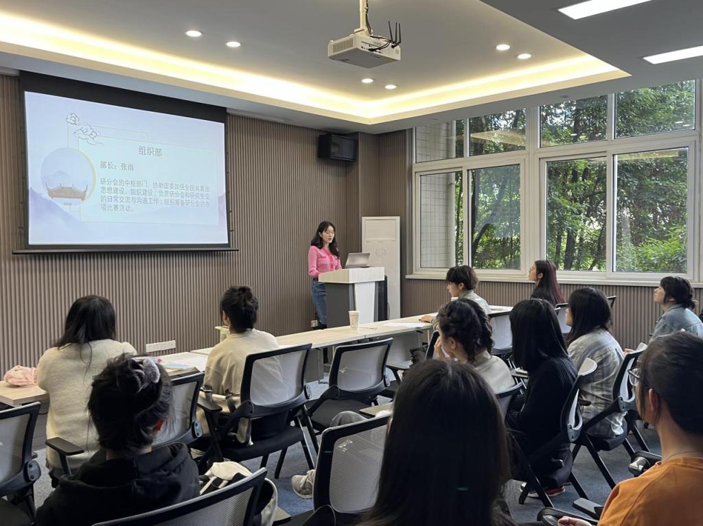 首先由研分会主席韩潇濛向2023级研究生新生介绍研分会的基本情况、各部门职责与招新流程。接着进行本次招新面试,竞选流程为每位候选人从个人简历、竞选职位、个人对所申报职位所具备的优势等方面进行三分钟以内的脱稿演讲,由研分会主席团、部长与研分会指导老师唐玉星向各候选人随机提问,考察候选人临场应变、活动策划、团队协作等多方面能力,并结合各候选人的综合表现进行评分。面试现场气氛活跃,候选人们沉着冷静、自信从容,体现了良好的素质和修养,也展示了文新学院积极向上、朝气蓬勃的精神面貌。