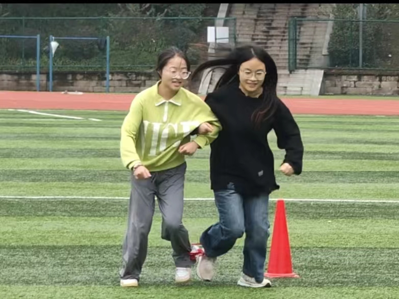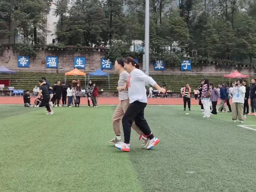 在两人三足项目中,我院研究生运动员们彼此团结一心、共同前行,最终在欢声笑语中结束了此次难忘的比赛。